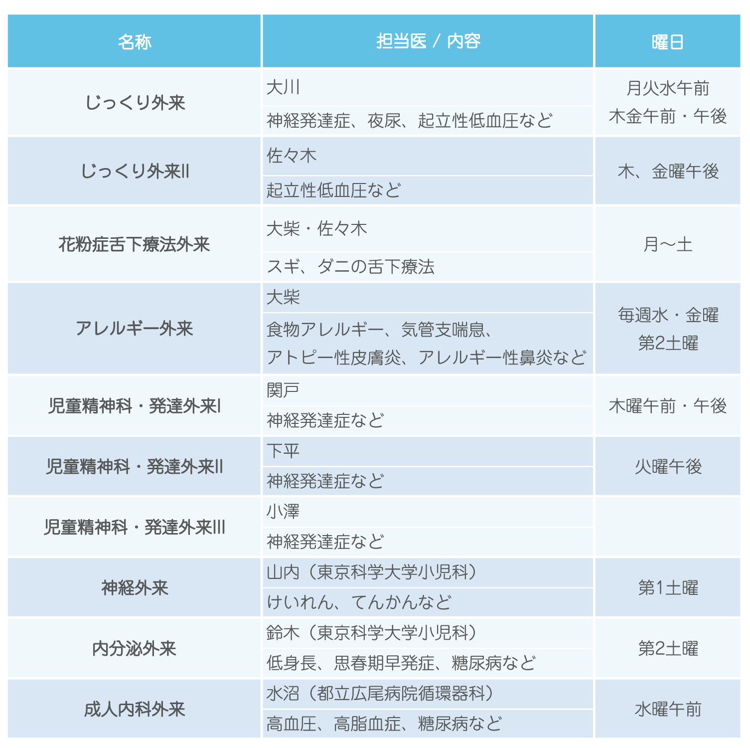 一般外来担当表 専門外来担当表